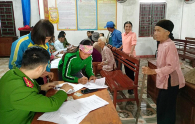Lực lượng công an ở Hà Tĩnh đang phối hợp với bộ phận chính sách xã hội và ngân hàng trên địa bàn tỉnh hỗ trợ người dân mở tài khoản ngân hàng phục vụ chi trả an sinh xã hội không sử dụng tiền mặt.